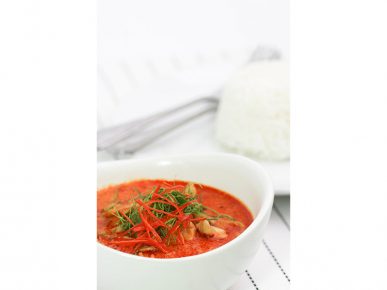 dry chilli, kaffir lime peel, galangal, shallot, garlic, lemongrass, coriander root, shrimp paste, whiter pepper, sugar, salt, palm sugar, fish sauce, coriander seed, cumin, vegetable oil