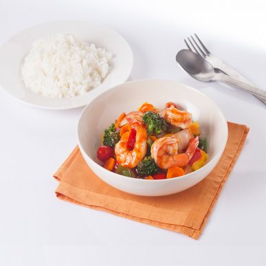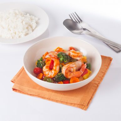 - Add vegetables 100g and “Chef Yuree” Sweet and Sour Sauce 1 pack (80g). Mix well with high heat and serve.