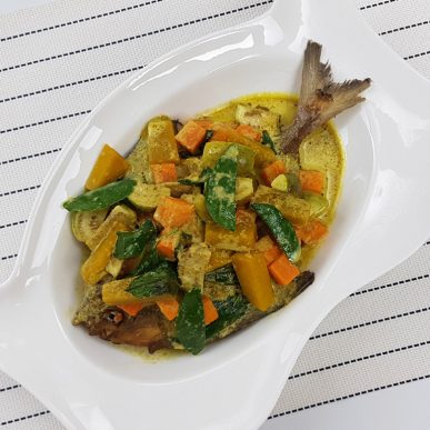- โรยด้วยใบโหระพา 2-3 ใบ และ ใบมะกรูด และพริกแดง ยกเสริฟ